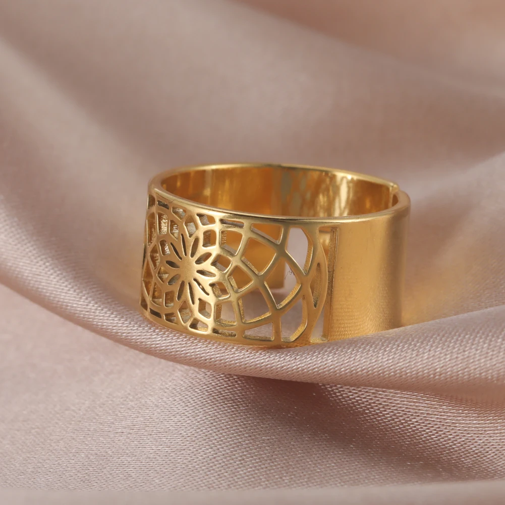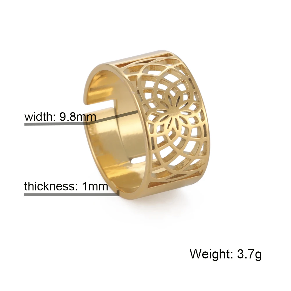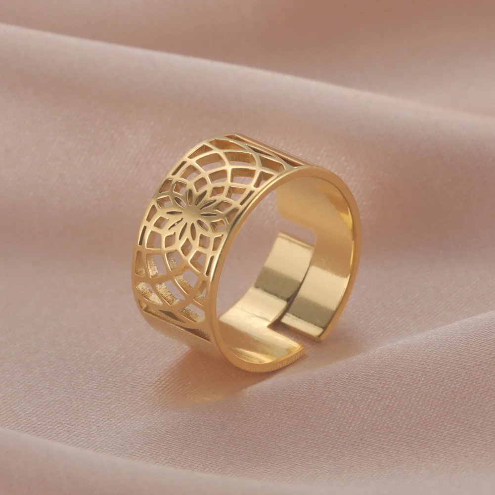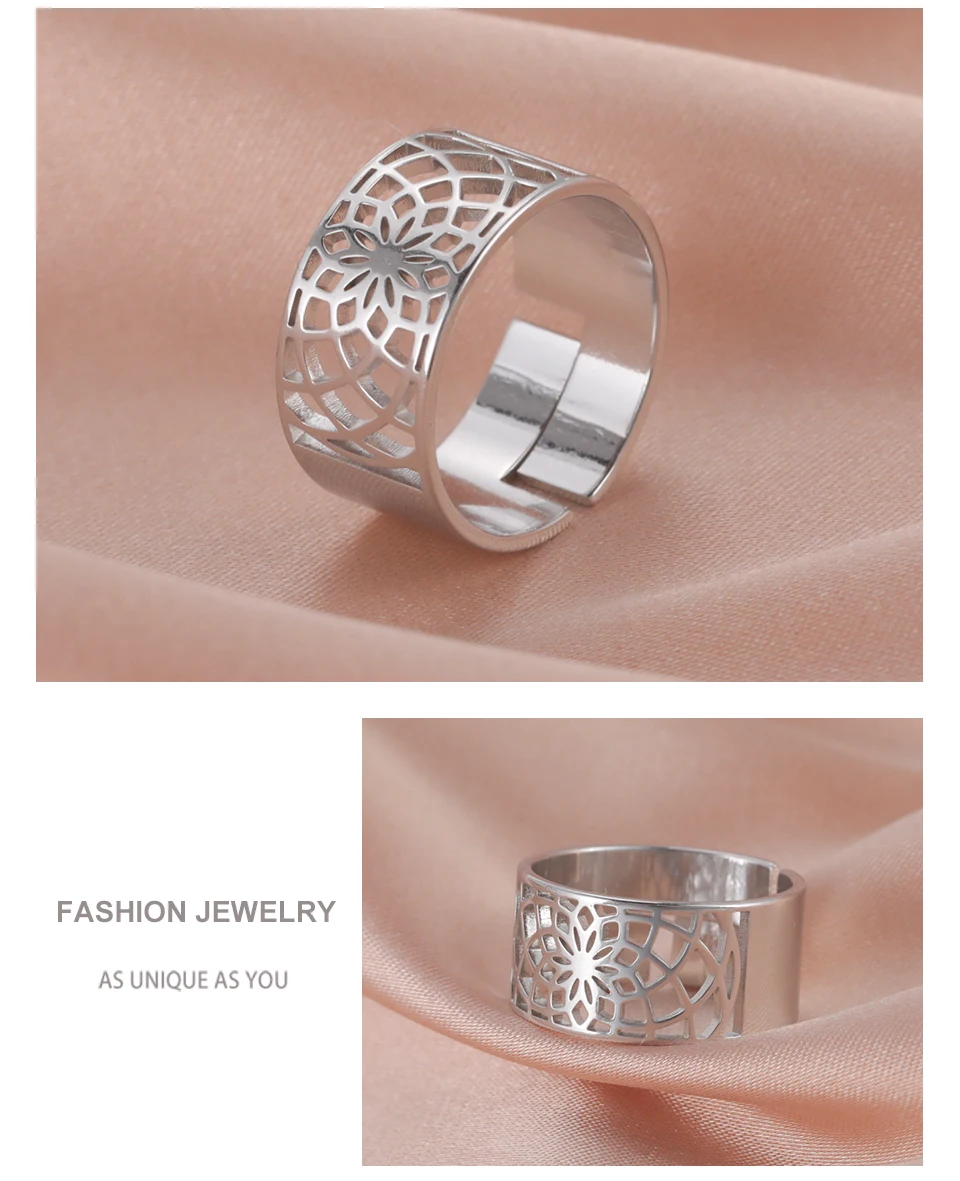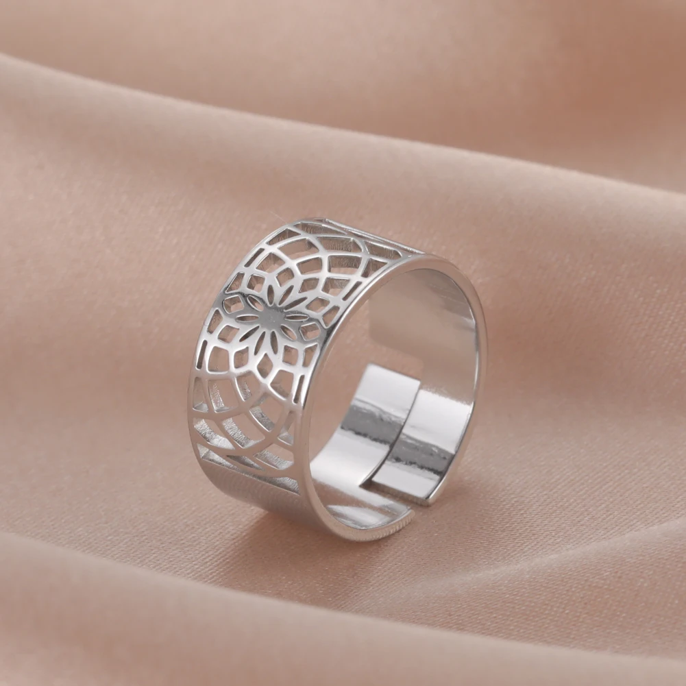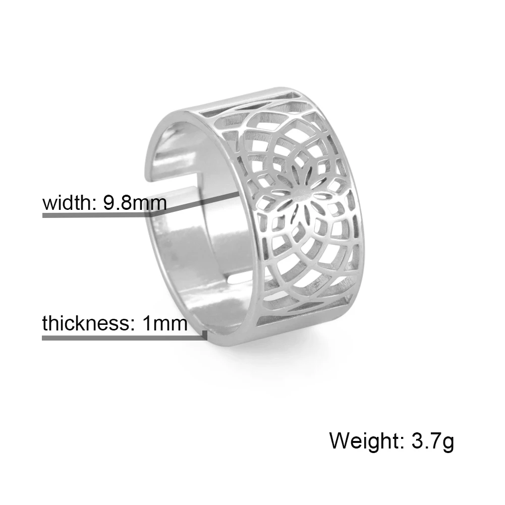 Женское кольцо из нержавеющей стали, с изображением цветов жизни