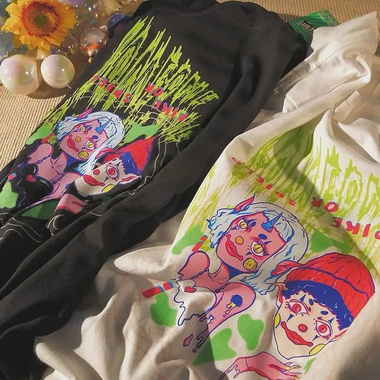 Футболки 90s уличная одежда с круглым вырезом и коротким рукавом Y2K наряды футболка одежда винтажный принт для ночного клуба Harajuku уличная футболка панк