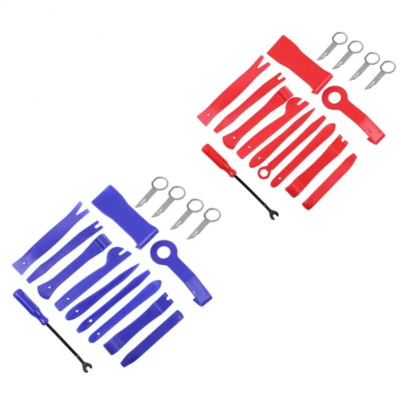 16 или 19 инструментов разной формы и толщины, которые помогут вам в короткие сроки. Пластиковая ручка и стержень из нержавеющей стали могут плотно прилегать к штифту и применять рычаг именно там, где требуется для выскакивания стопорных штифтов. Инструменты снятие магнитолы позволяют легко снимать радио.