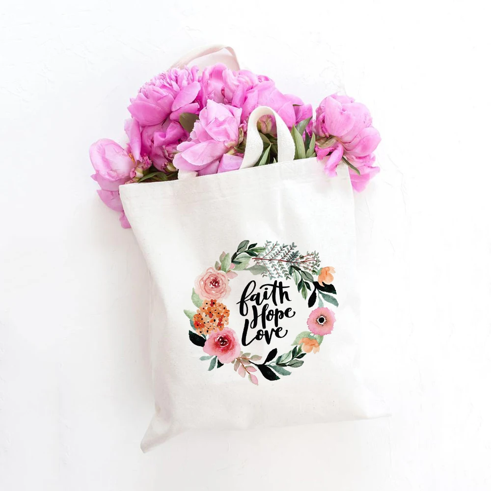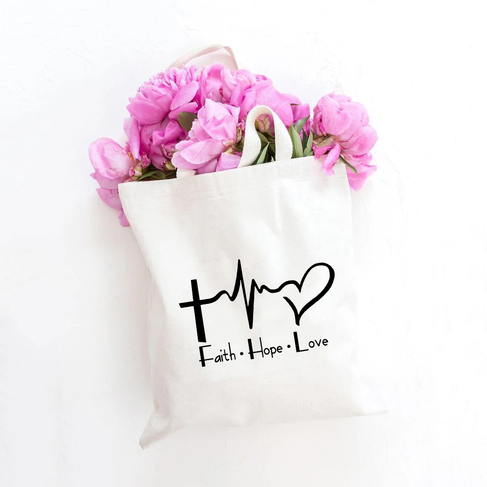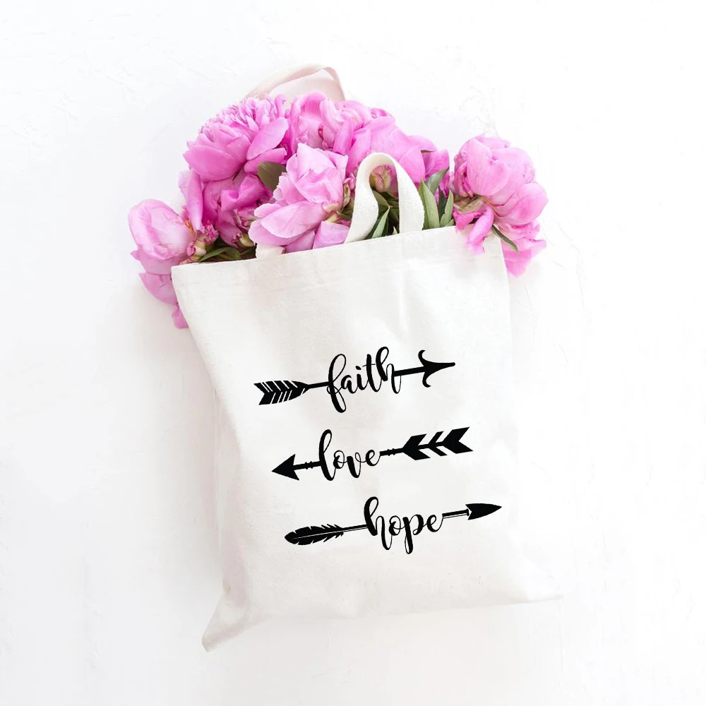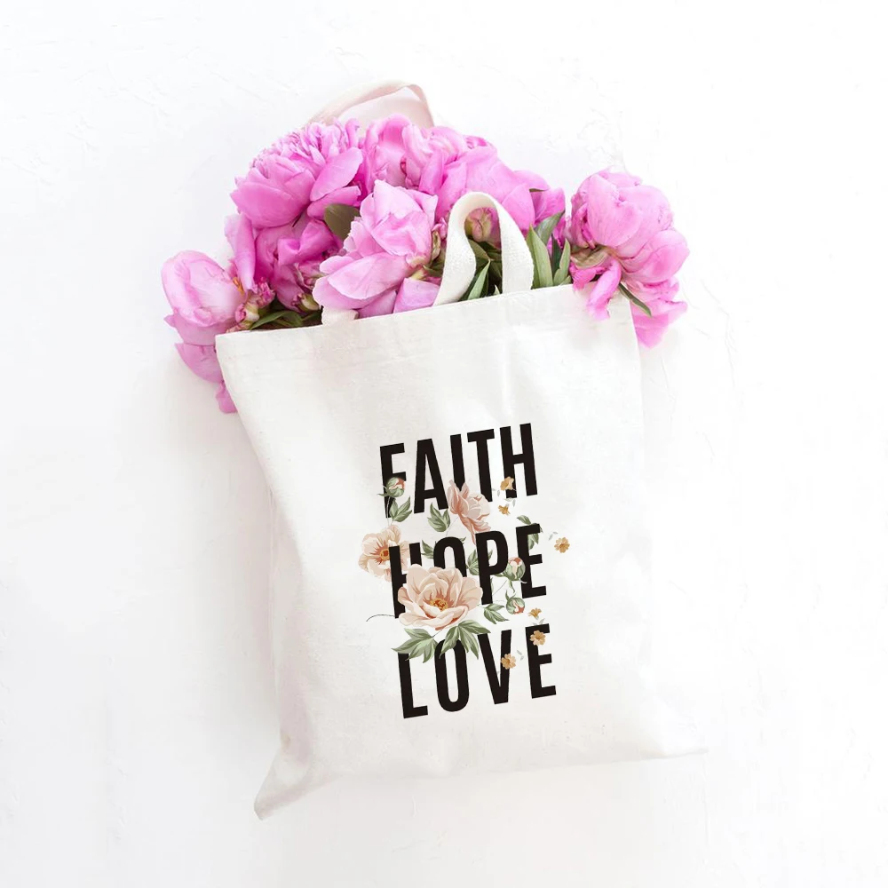 Сумка-тоут с надписью Faith Hope Love Женская, Экологически чистая многоразовая Сумочка на плечо для покупок в поездках