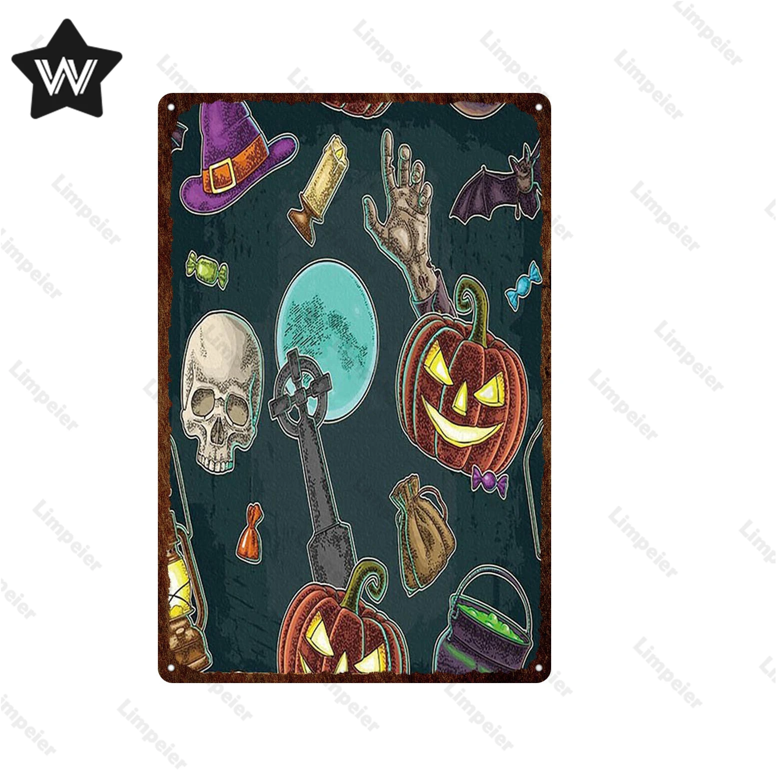 Металлический знак на Хэллоуин, тыква, фонарь, оловянный постер, наклейки на стену на Хэллоуин, зернистый налет для декора бара, клуба