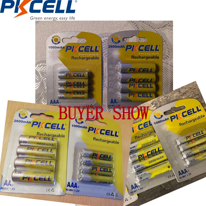 Аккумуляторные батарейки PKCELL, 8 шт., 4 шт.карта, 2600 мАч, 4 шт.карта, 1000 мАч, 1,2 в