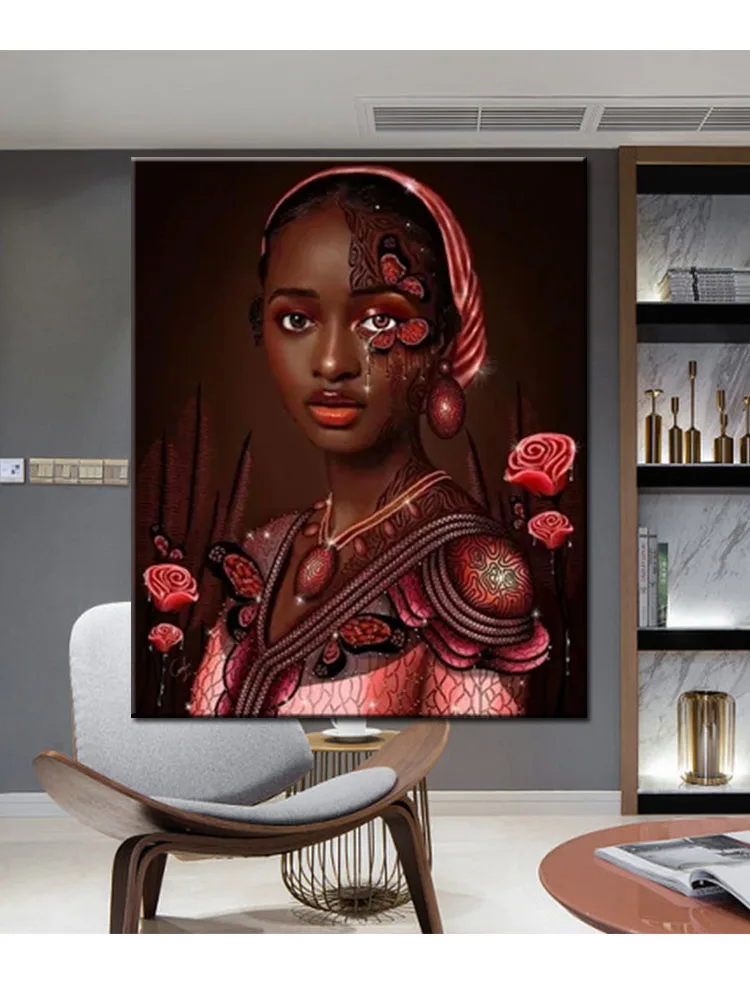 Африканский женский ромбовидный рисунок, готический портрет для полного квадратного круглого сверла, мозаичный фон, 3D стерео настенное искусство, темный девушка,