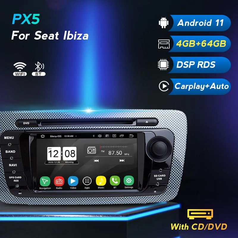Автомагнитола 2DIN, Android 11, DSP, RDS, 8 ядер, DVD, для Seat Ibiza 6j, 2009, 2010, 2012, 2013, GPS-навигация, аудио, мультимедийный плеер, Carplay