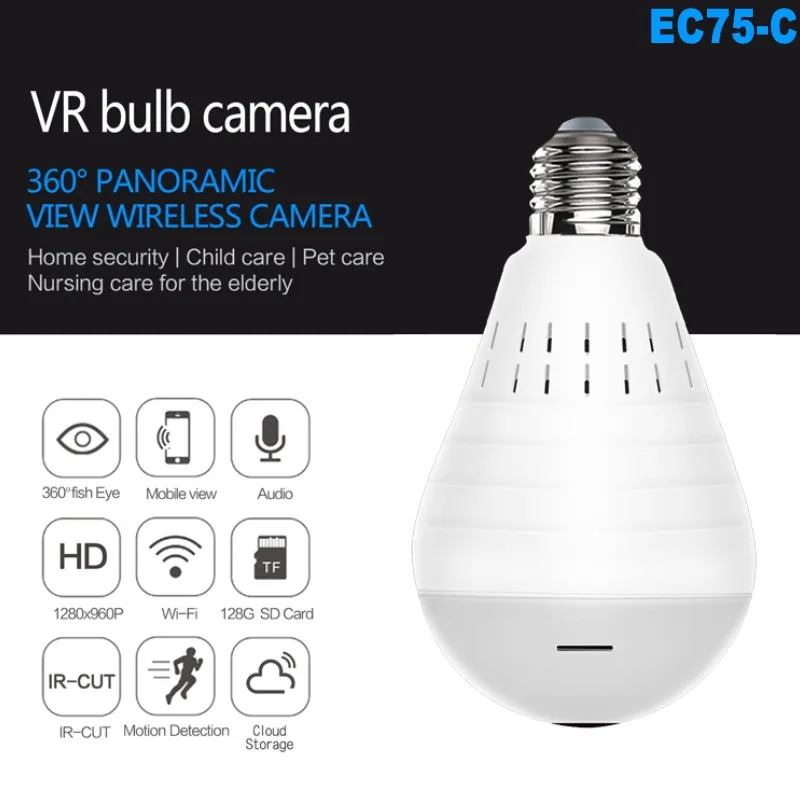 Светодиодная лампа EC75LED, беспроводная IP-камера 960P, Инфракрасная видеокамера рыбий глаз, угол обзора 360 градусов, облачное хранилище с функцией ночного видения
