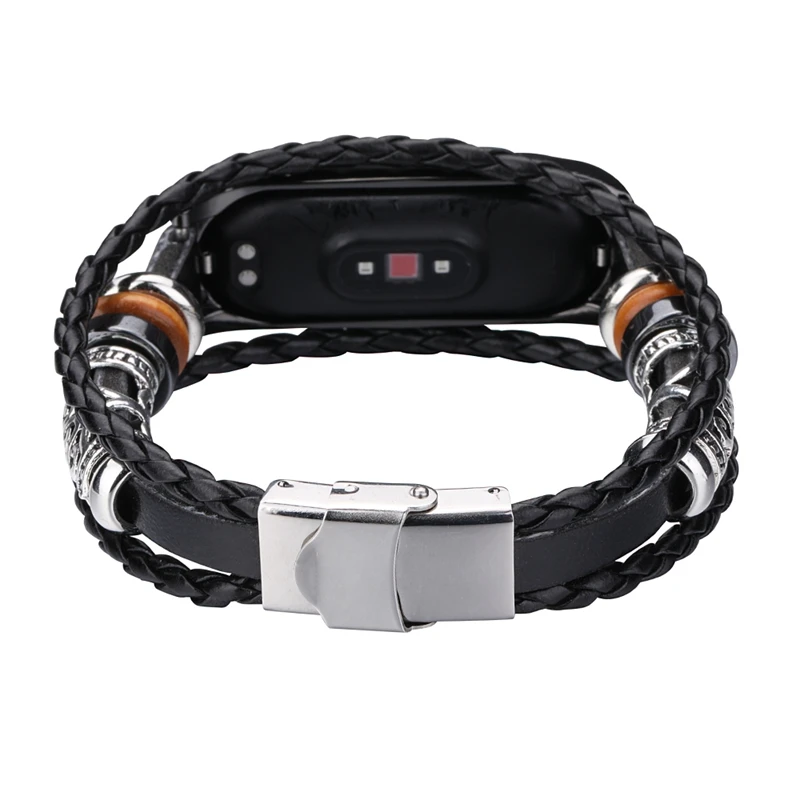 Сменный кожаный браслет с бусинами, Плетеный ремешок для Xiaomi Mi ...