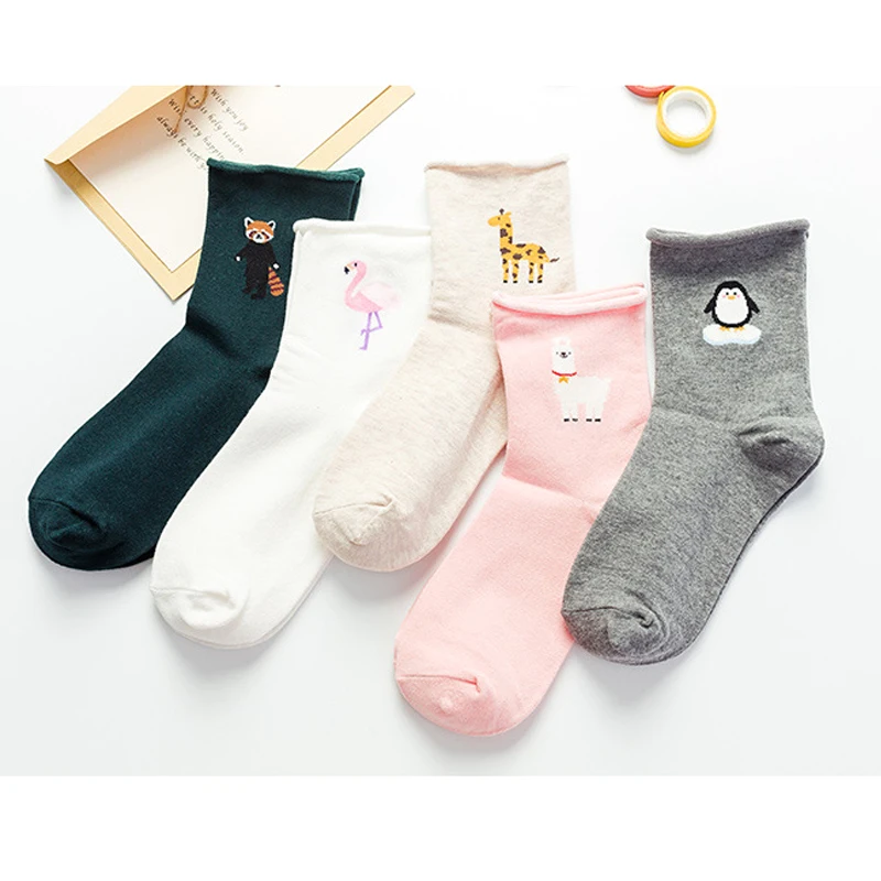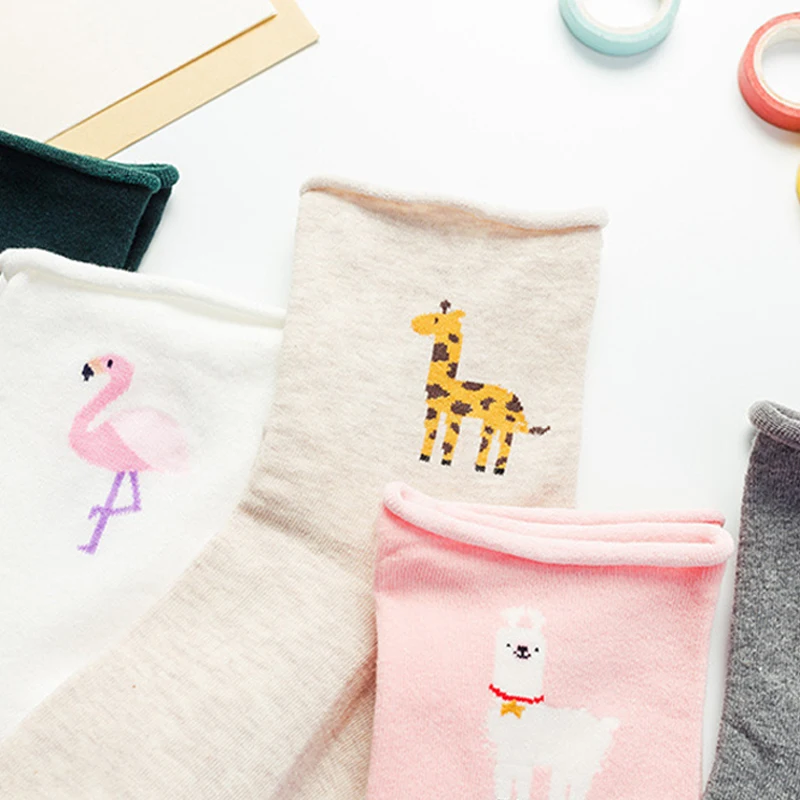 Повседневное Фламинго Modis Harajuku со смешными героями из мультфильмов; Женские повседневные носки для женщин и мужчин, коротких носков с изображениями животных ламы в стиле "Лолита" Счастливые носки для женщин