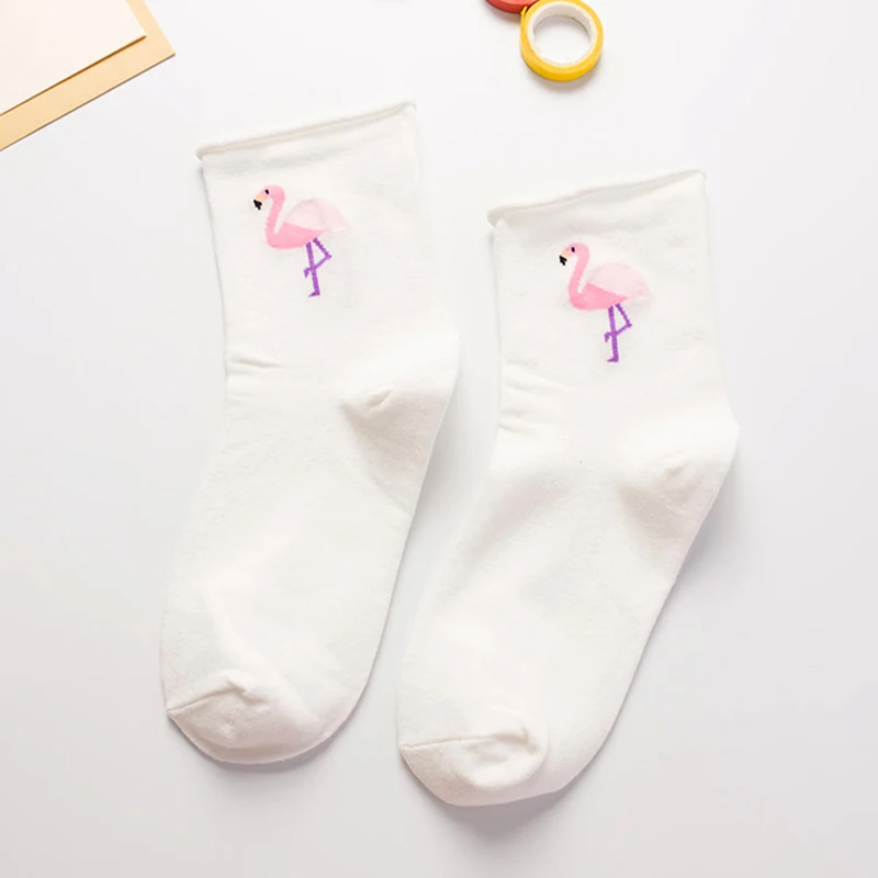 Носки женские короткие в стиле Харадзюку с изображением фламинго