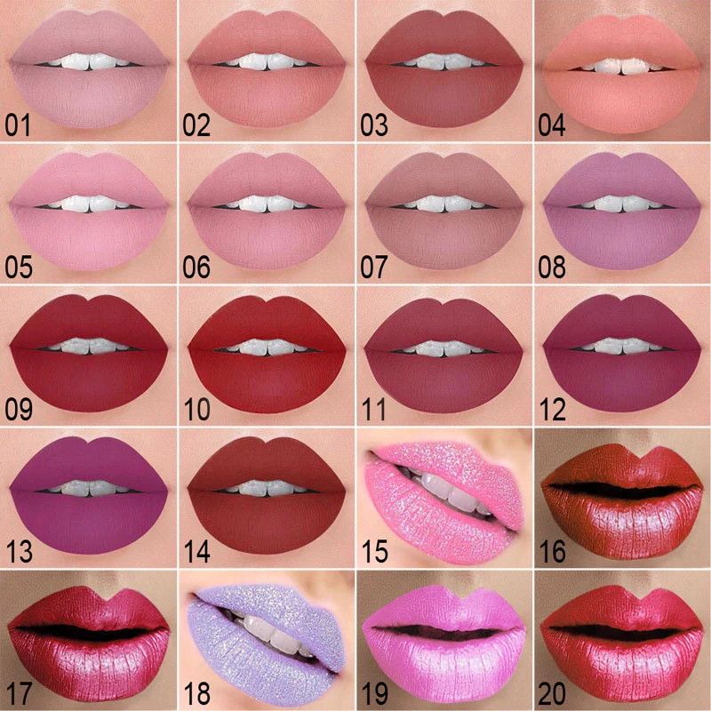 20 Цвета губная помада, матовая + Shimmer психического Красота блеск для губ Водонепроницаемый стойкая помада нюд, блеск, блеск для губ, в виде красных губ оттенок 2021 горячая распродажа