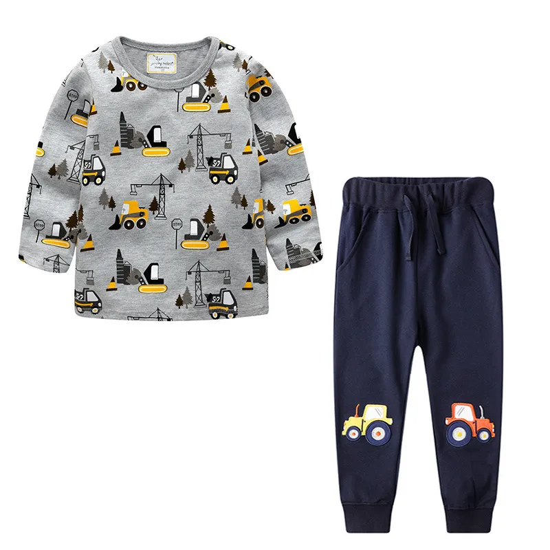 Бисер девушка платье с длинными рукавами и хлопковой одежды для мальчиков с дизайном в виде героев комиксов комплекты экскаватор с вышивкой, для детей, Детский комплект из 2 предметов, костюмы