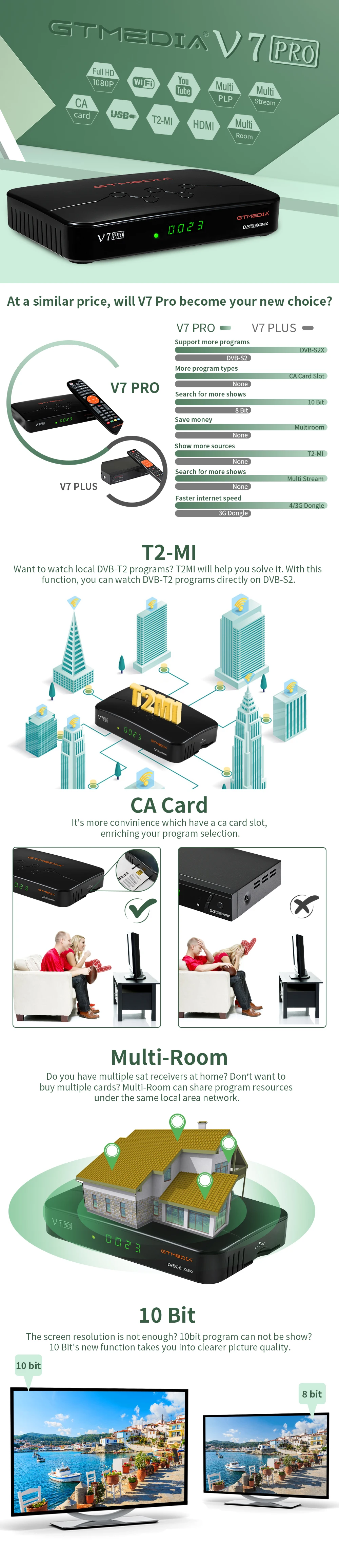 Спутниковый ресивер GTMEDIA V7 PRO DVB-SS2S2X декодер freesat v7 s2x обновлен gtmedia v7s hd с usb Wi-Fi freesat v7 tt