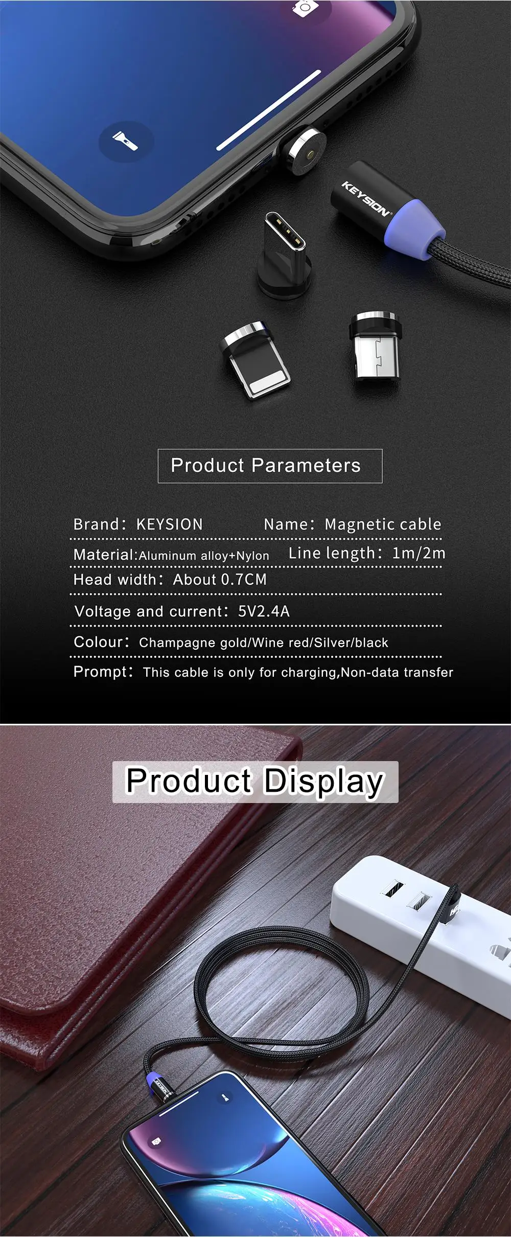 Магнитный кабель USB-Type CMicro USBLightning для телефонов iPhone Android, 1-2 м