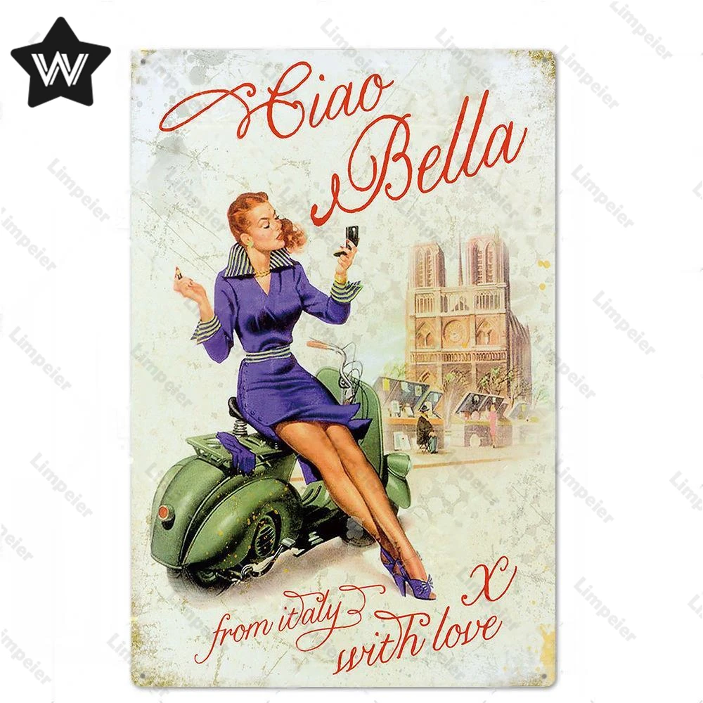 Сексуальный женский металлический постер для мотоцикла, Оловянная т...