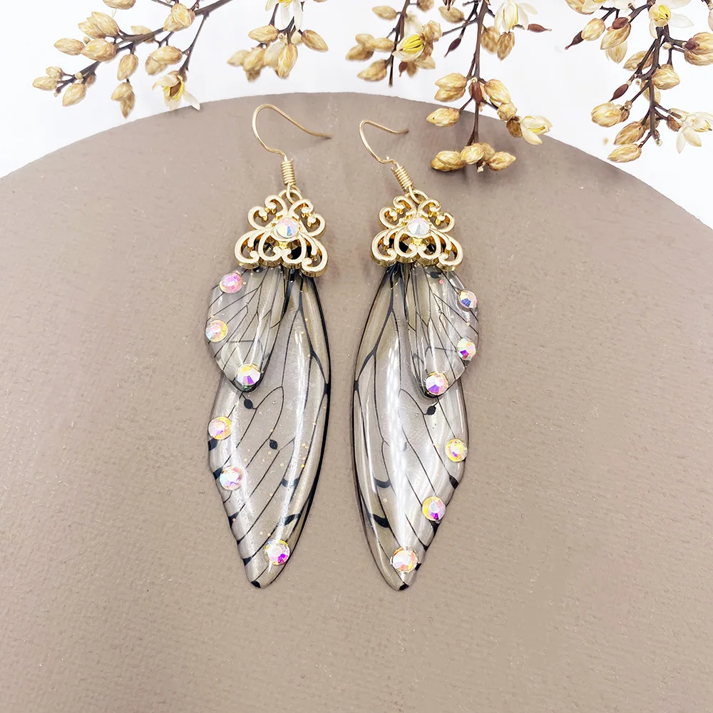 Серьги-крылья из прозрачной смолы ручной работы, стразы из фольги, ...
