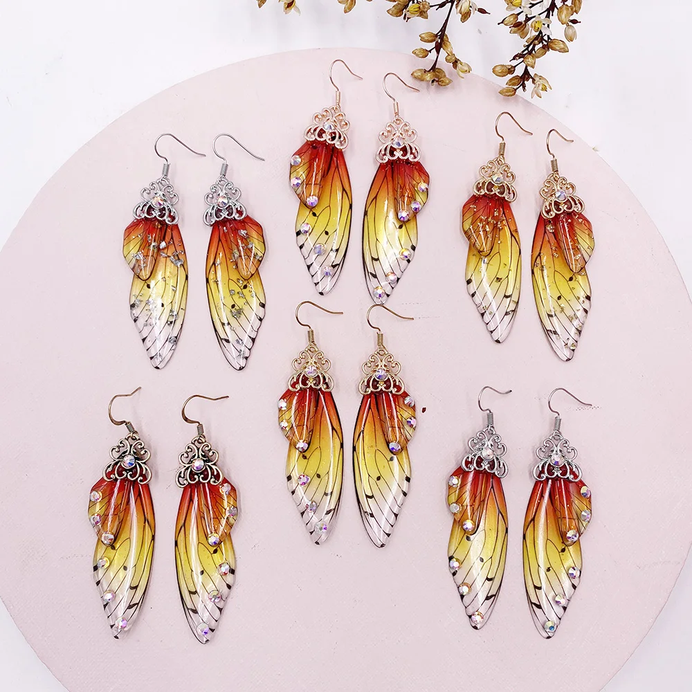 Минар ручного изготовления, сказочный Смола моделирование крыло серьги в виде капель с фольга стразы серьги-подвески с бабочками романтической свадьбы ювелирных изделий