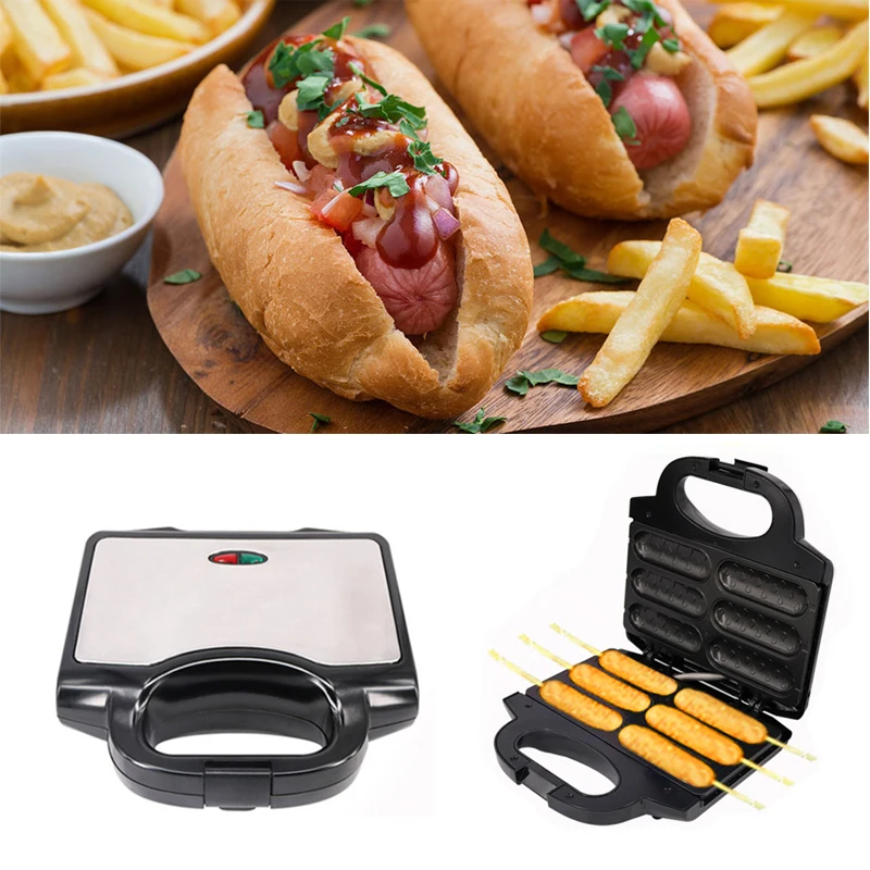 Электрическая машина для приготовления хот-догов, 850 Вт, антипригарное покрытие, хрустящие кукурузы, французские маффины, машина для приготовления сосисок на завтрак, европейская вилка