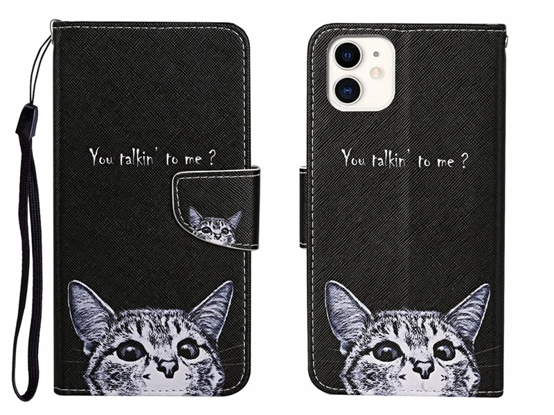 Кожаный чехол-книжка с рисунком для iPhone SE 6 7 8 6S 11 12 Pro X ...