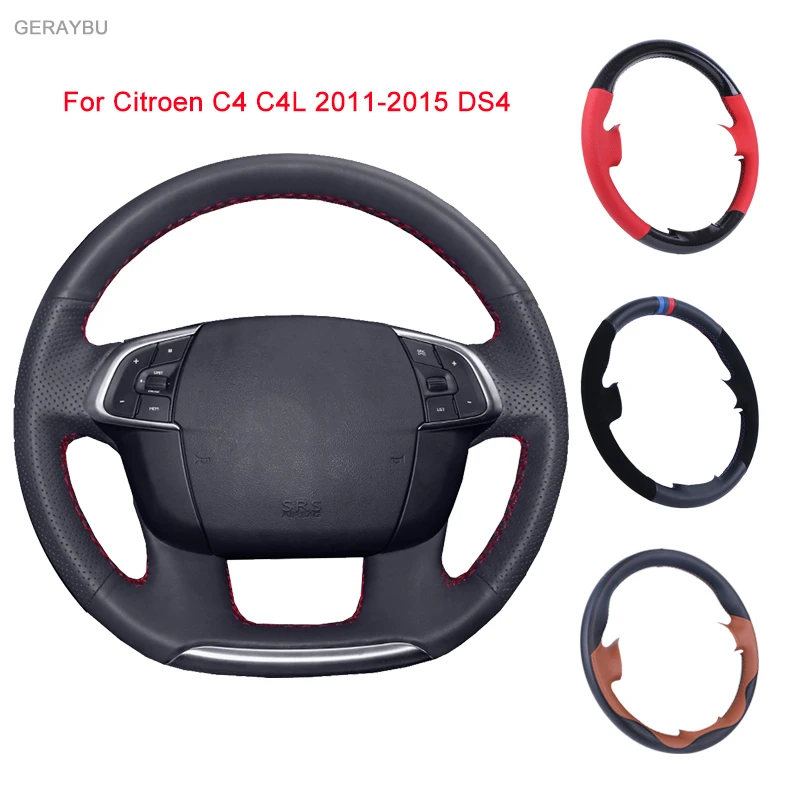 GERAYBU изготовленный на заказ DIY черный кожаный сшитый вручную чехол рулевого колеса автомобиля для Citroen C4 C4L 2011-2015 DS4 дышащий износостойкий