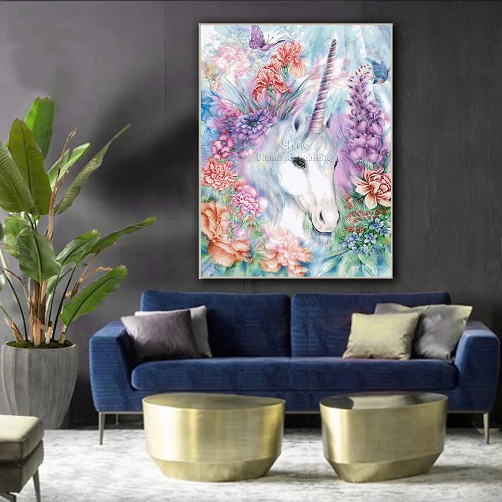 Алмазная живопись Набор для вышивания Белая лошадь пижама в виде животных Единорог мозаика мультфильм 5D DIY камни в форме ромба круглый Рождественская роспись дома