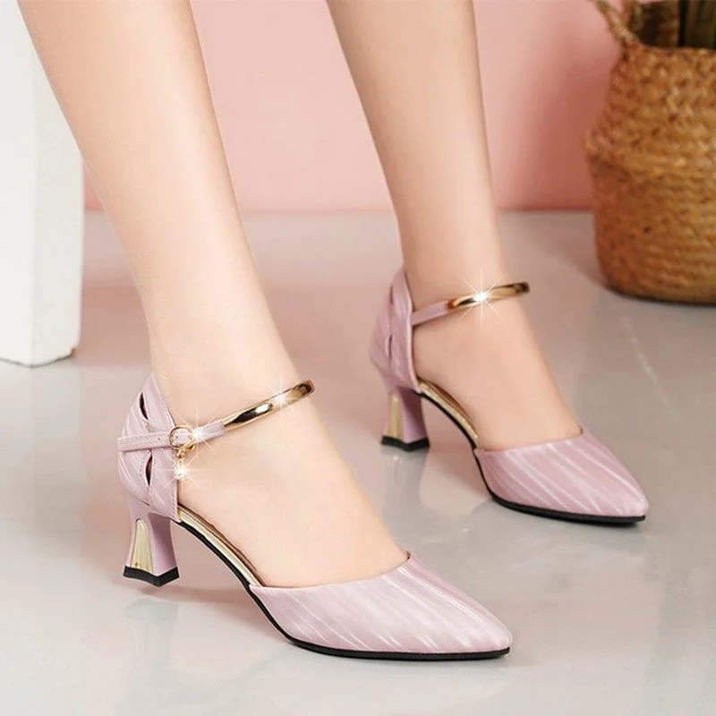 Туфли Akexiya женские на высоком каблуке, милые вечерние туфли с ремешком и пряжкой, свадебные туфли на толстом среднем каблуке, розового и золотого цвета, 2021
