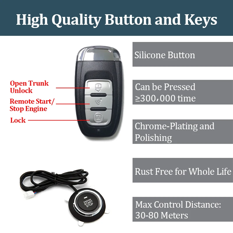 Название: пусковая системаТехнические характеристикиПодходит для: 12V Аккумуляторный автомобиль на радиоуправлении, van, пикап, внедорожник, и т. д., а также общего назначения продуктыОперационной Напряжение: 12V ± 2,8 VТок покоя: менее 10 мАРабочая частота: 433 МГцОсобенности1. Умный ключ Q6C для запуска системы, с помощью смарт-чипов, может обеспечить ключ для запуска/выключения, удобный и простой.2.PKE бесключевая запись, функция автоматического переключателя датчика блокировки, рядом с автомобилем 2 метра, автоматический датчик разблокировки.3. Есть дистанционный запуск/flameout, отсчет 10 минут Функция выключения.4. Летний крутой автомобиль, зимний теплый автомобиль, больше не несет автомобиль, когда это неудобно.5. С функцией идентификации пульт дистанционного управления не может начать нормально.Ключевая операция1. Не нажимайте на тормоз, короткое нажатие, чтобы открыть звука ACC, затем нажмите кнопку "ВКЛ" приборной панели, индикатор светильник вспышек, затем нажмите кнопку ВЫКЛ, вы можете цикличной работой.2. Тормоза, короткое нажатие, запуск системы зажигания, светильник, длинный светильник.3. Когда пламя включено, тормоза Короткие, и система выключена.4. Шаг на или нет тормоза, длительное нажатие, система может отпустить после зажигания, светильник, длинный светильник.Примечание: Из-за ручного измерения возможны некоторые ошибки.Посылка в комплекте2 x ручка дистанционного управления2 x Чувствительная антенна1 хост1 x Кнопка запуска1 х стартовый жгут1 x Жгут обнаружения1 x Кнопка восстановления1 х РуководствоПримечаниеИз-за проверки таможенной безопасности причина:1. Товары из Китая не содержат батареи.2. Товары со склада за рубежом могут или не могут содержать батарею, Случайная Доставка.3. Этот продукт не имеет функции будильникаУважаемые покупатели, из-за таможенных ограничений ключи комплекта не могут содержать батарею.Пожалуйста, подготовьте батареи сами.Модель батареи: CR2032Для каждого ключа требуется 1 шт. аккумуляторов, поэтому для одного комплекта требуется 2 шт. аккумуляторов.
