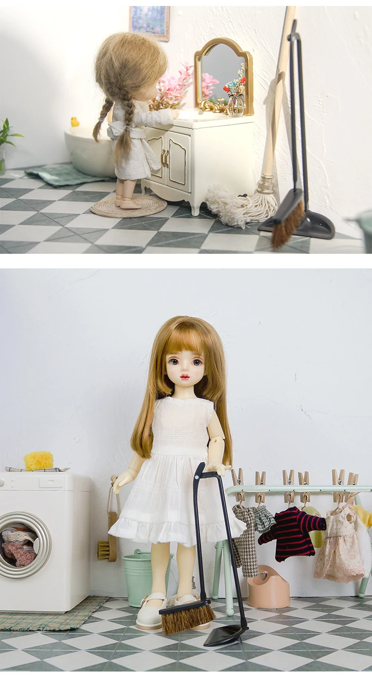Металлическая мини-метла Aizulhomey, совок, мышь, мебель для кукольного домика, 16 OB11, аксессуары для кукол Lol, Blyth, кухня, детские игрушки для уборки