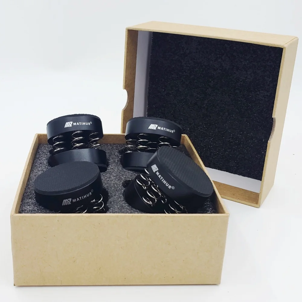 ② Противоскользящая Резина: поглощение вибрации и достижение более высокого качества удовольствия от прослушивания, улучшение четкости звука, стерео изображения и отклика басов дизайн: CNC обработанный и пружинный изоляционный Стенд ноги легче установить, нет необходимости делать отверстия и нет необходимости использовать двухсторонний клей, чтобы избежать повреждения вашего оборудования. Espeically это удобно для вас, чтобы настроить Подшипник нагрузки путем перемещения или добавления пружины, которые могут сделать звук чувствовать себя по-разному функции: использование изолирующей подставки для ног заключается в том, чтобы приостанавливать акустические отзывы от ваших динамиков или изолировать сабвуфер для вибрации. Тона будут более сфокусированы, легче и с меньшим количеством шума. Он также может избежать значительной вибрации, которая может беспокоить внизу. Преимущества: он обладает высокими амортизационными характеристиками, которые могут сохранять чувство низкого количества и повышать чувство высокочастотной линии и простое чувство. Применимые объекты: динамики, усилители, инструмент, поворотный стол, CD/DVD плееры, рекордеры, DAC и другое оборудование