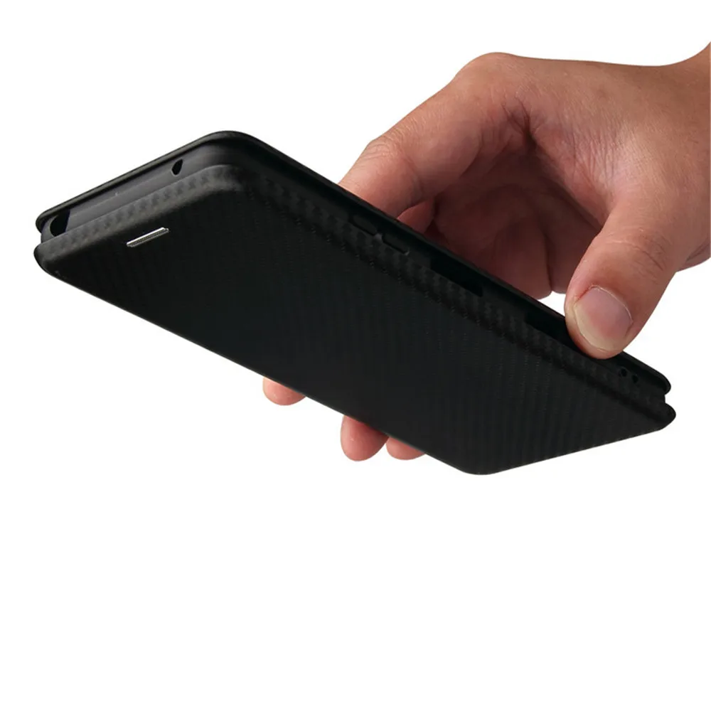 Флип-чехол из углеродного волокна Магнитный кожаный чехол-кошелек д...