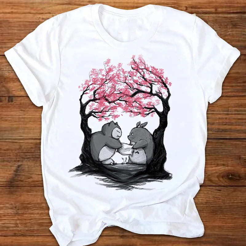 Женская футболка с изображением героя мультфильма Тоторо для Графический Футболка 90s для девочек Harajuku модные футболки для детей; O-образный вырез; Лето; Футболка с коротким рукавом топы, женские футболки