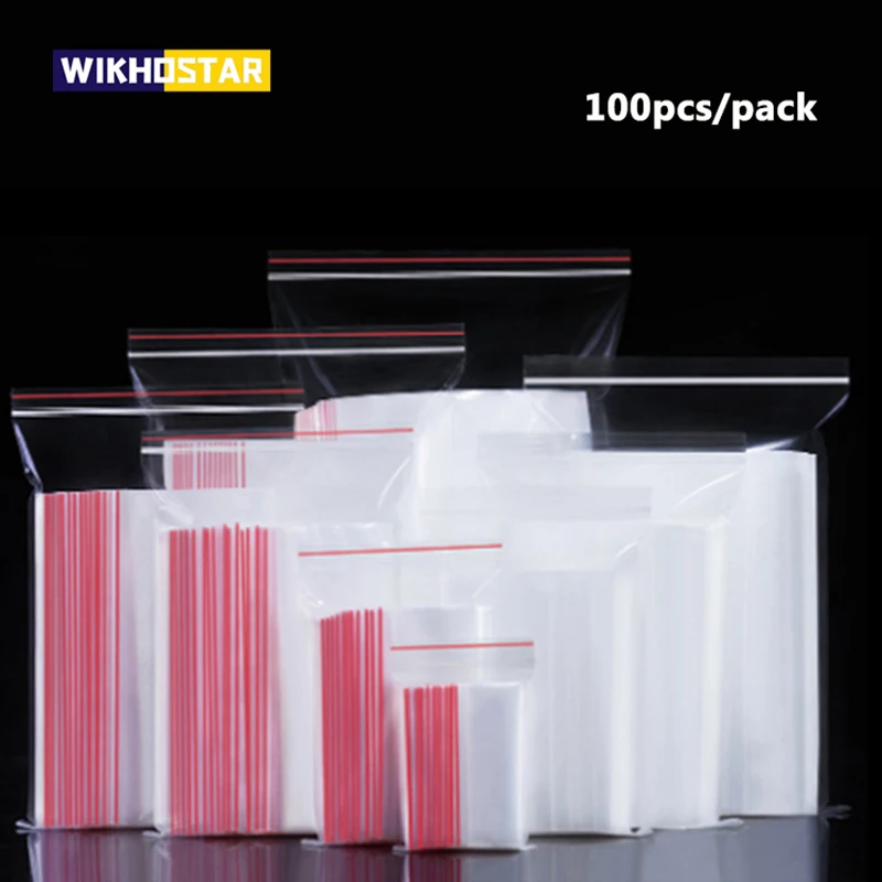 WIKHOSTAR 100 шт.упак. Resealable мешки замка застежка-молнии упаковка для хранения продуктов вакуумные пакеты для сохранения свежести продуктов уплотнения собственной личности Ясный Поли мешок организатор