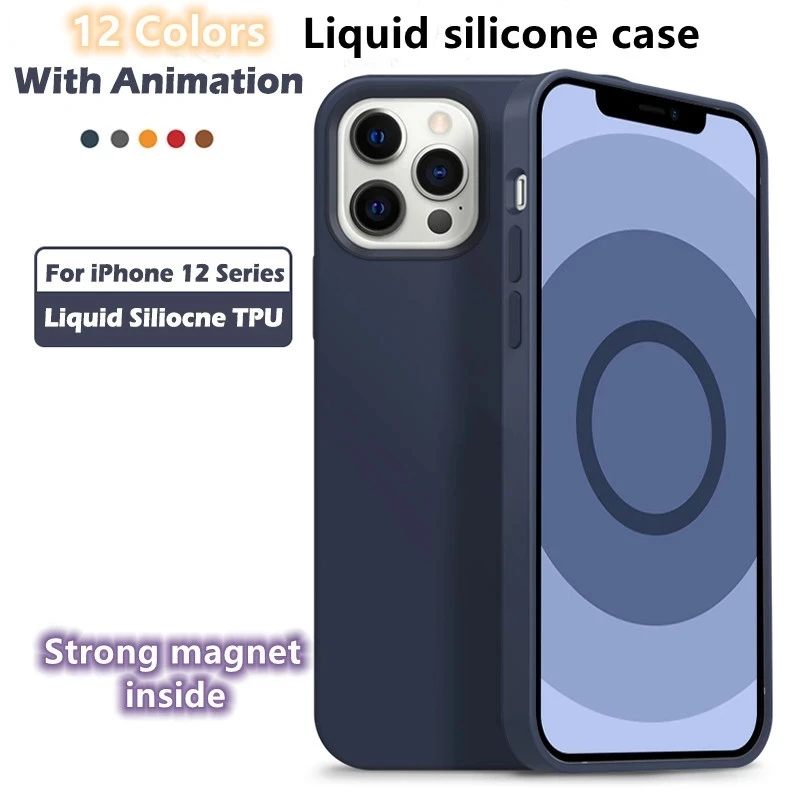 Официальный Цветной силиконовый чехол с жидкостью и анимацией для iPhone 12 Pro Max, Магнитный защитный чехол для iPhone 12 Pro 12 Mini