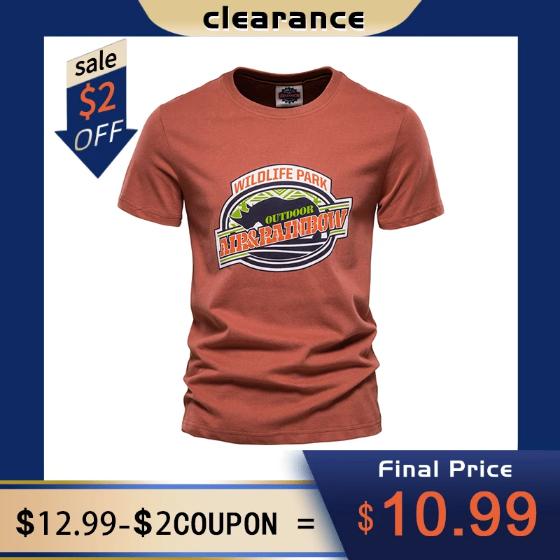 Мужская хлопковая футболка с принтом AIOPESON, повседневная облегаю...