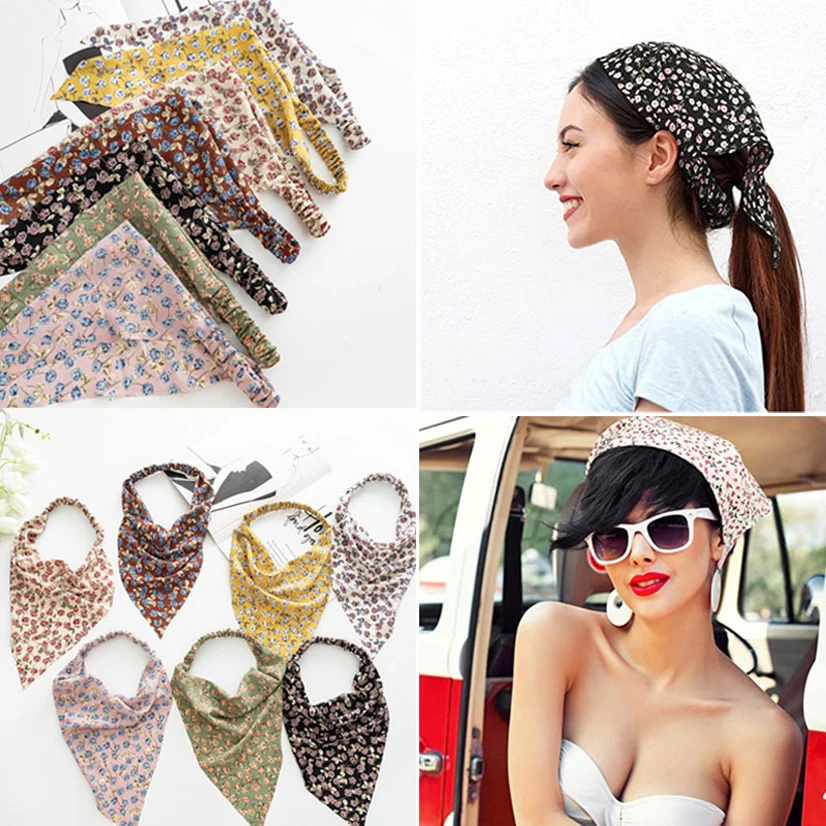 Винтажная Женская бандана, эластичная лента с шарфом, носовой платок, лента для волос, женские резинки, тюрбан, головной платок, женские шарфы