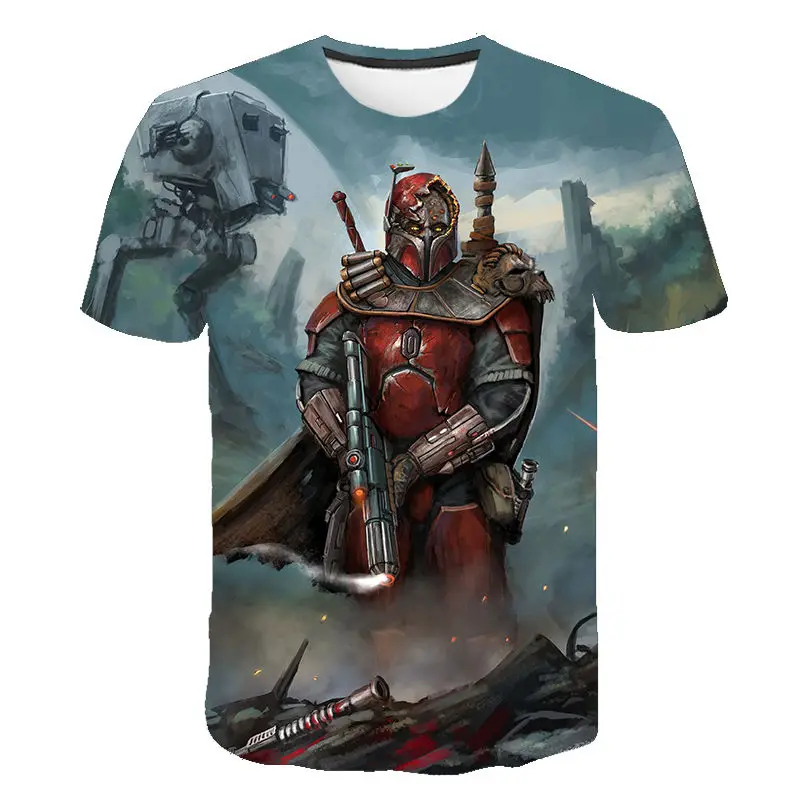 Футболка мандалорец для мальчиков и девочек, летняя уличная футболк...