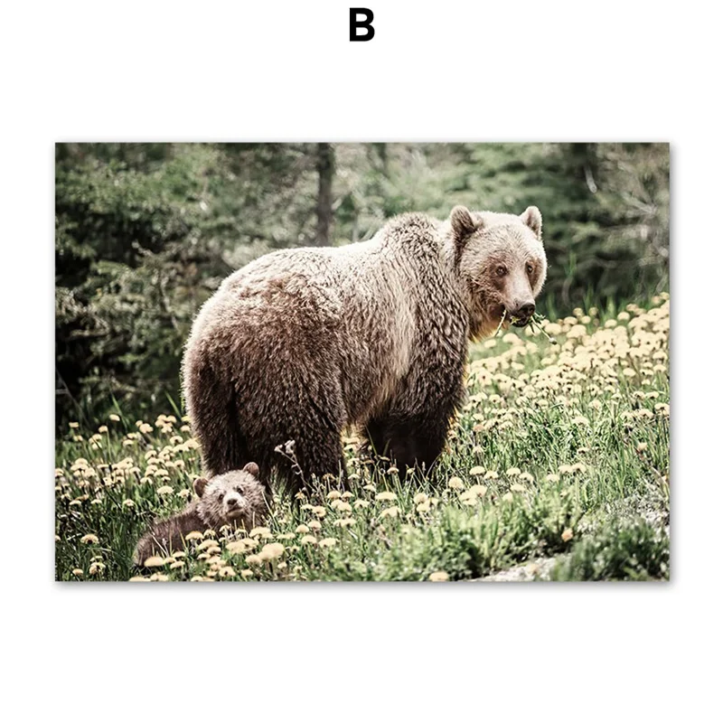 Картина Настенная в скандинавском стиле с рисунком медведя, зайца, ...