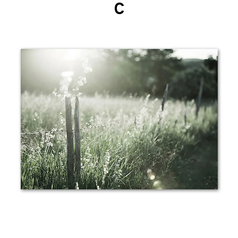 Утро Восход солнца трава nordic дерево, холст для живописи солнечно...