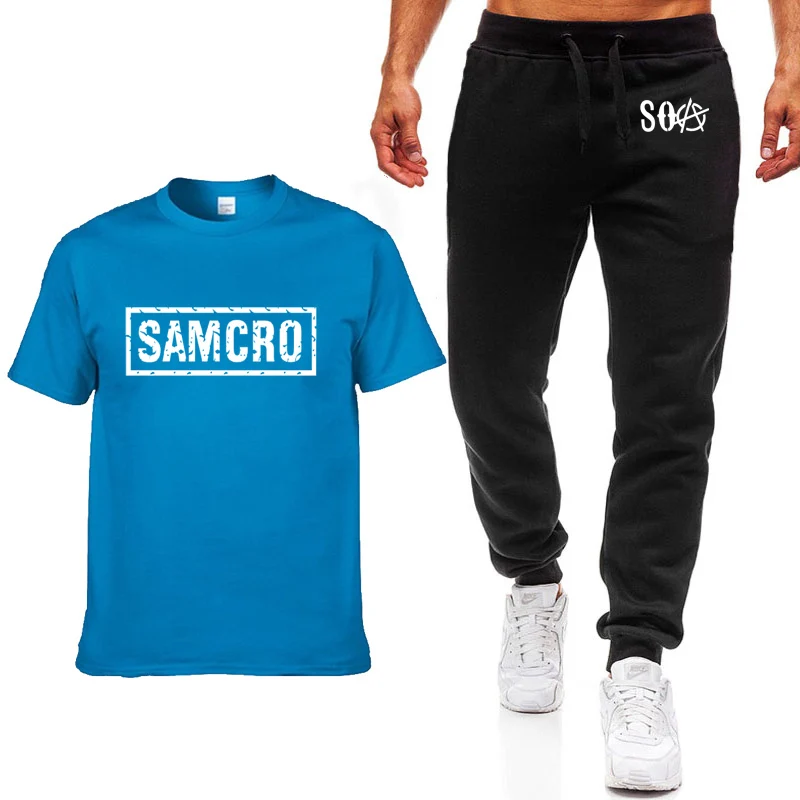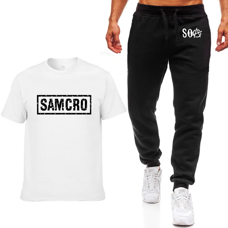 Костюм мужской из футболки и брюк, летняя повседневная хлопковая футболка с короткими рукавами и штаны, комплект из 2 предметов