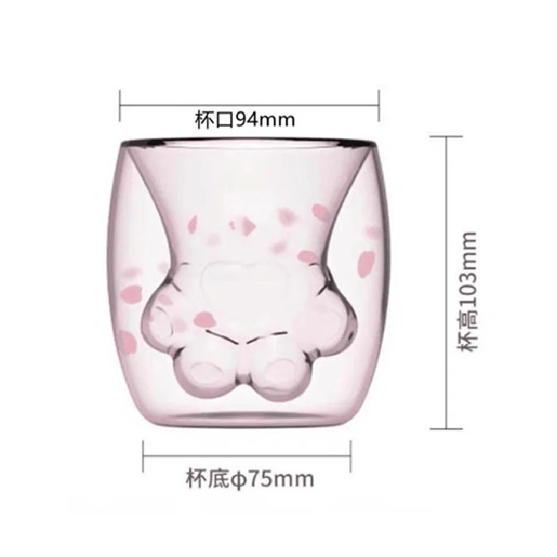 Чашка кошачья лапа, двойные стеклянные чашки, чашки для молока и сока с котом из мультфильма Кот, кружка для кофе для дома и офиса, лучшие подарки на день рождения, бутылка для воды