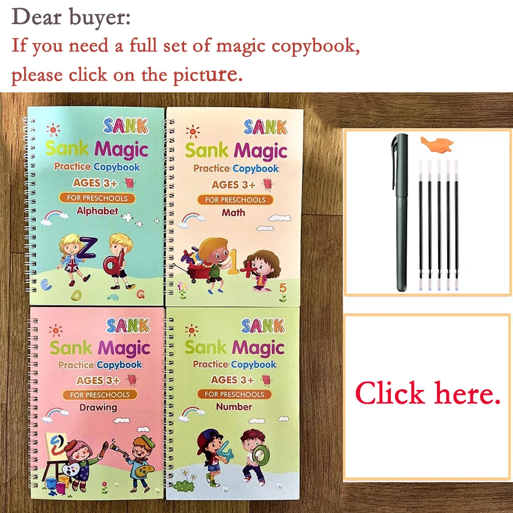 1 книга + ручка, книга для обучения магии, без протирания, детская игрушка, наклейка для письма, английская тетрадь для каллиграфии, игрушки Монтессори