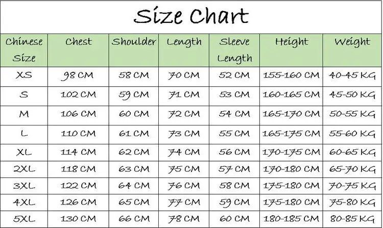 * Азия/размер бирки: это Азиатский Размер, он на 2-3 размера меньше, чем размер ЕС/США.Если вы носите Европейский/американский размер M, вы можете выбрать наш Размер XL или XXL--- Правильные размеры для вас.* Не уверены в вашем размере?Не волнуйтесь, просто сообщите нам ваш рост, вес, мы порекомендуем вам правильные размеры.---* Как измеряется вручную; Погрешности могут составлять 1-3 см разницу допускается (1 см = 0,39 дюймов).