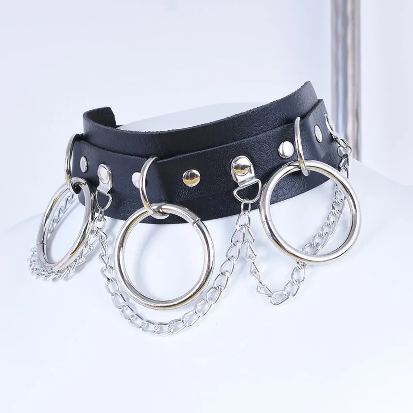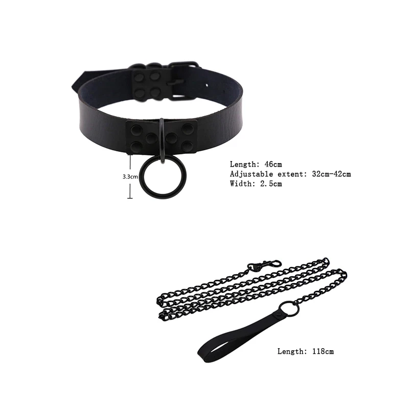 Ошейник женский кожаный, черный, в готическом стиле, с цепочкой