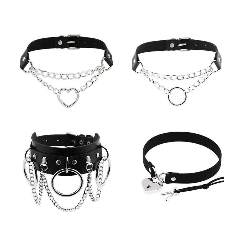 Харадзюку чокер сексуальный ключ-сердце, замок с заклепками черный готический панк цепочка металлический Готический чокер ожерелье для женщин хип-хоп Связывание Косплей