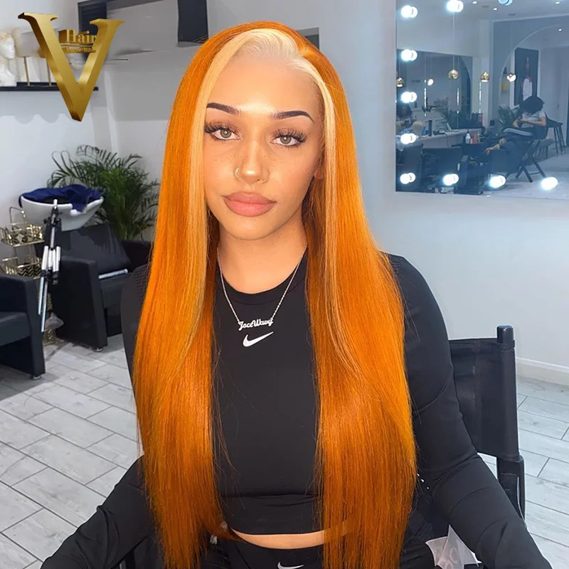 Оранжевые светлые цветные кружевные передние парики из человеческих волос