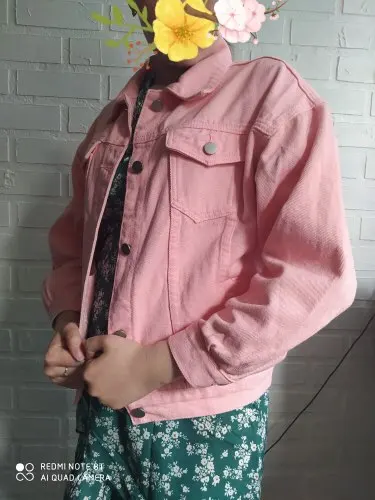 Куртка женская джинсовая короткая, розовая Повседневная Верхняя оде...