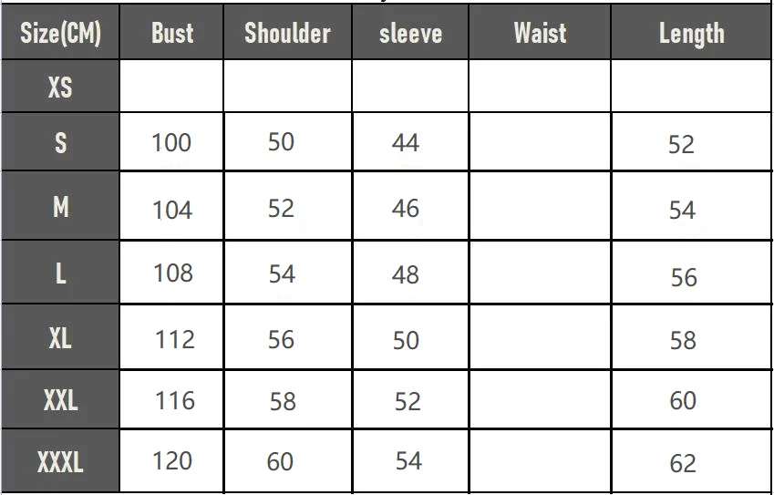 2. Пожалуйста, обратитесь к измерениям одежды, сравните их с измерениями вашего тела, чтобы выбрать правильный размер. Не выбирайте размер непосредственно в соответствии с размером этикетки или вашими привычками.