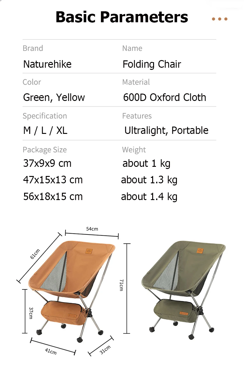Туристический ссветильник складной стул Naturehike, для барбекю, рыбалки, пикника, удобная спинка, для путешествий