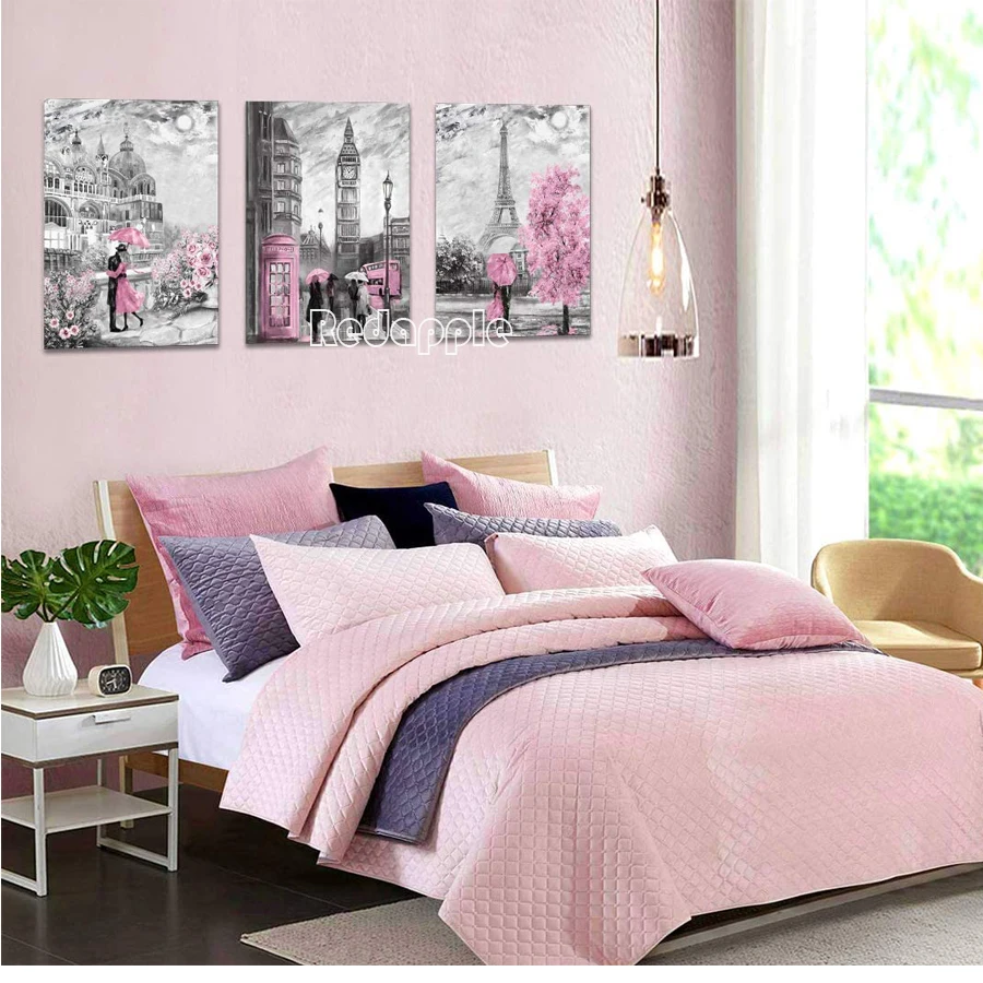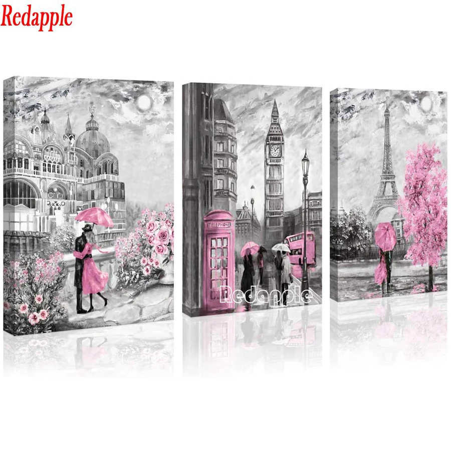 Триптих Алмазная вышивка Лондон Биг Бен Эйфелева башня черный белый розовый искусство полный квадрат/круглая дрель 5D DIY алмазная живопись20x25cmx3шт 25x30смX3шт