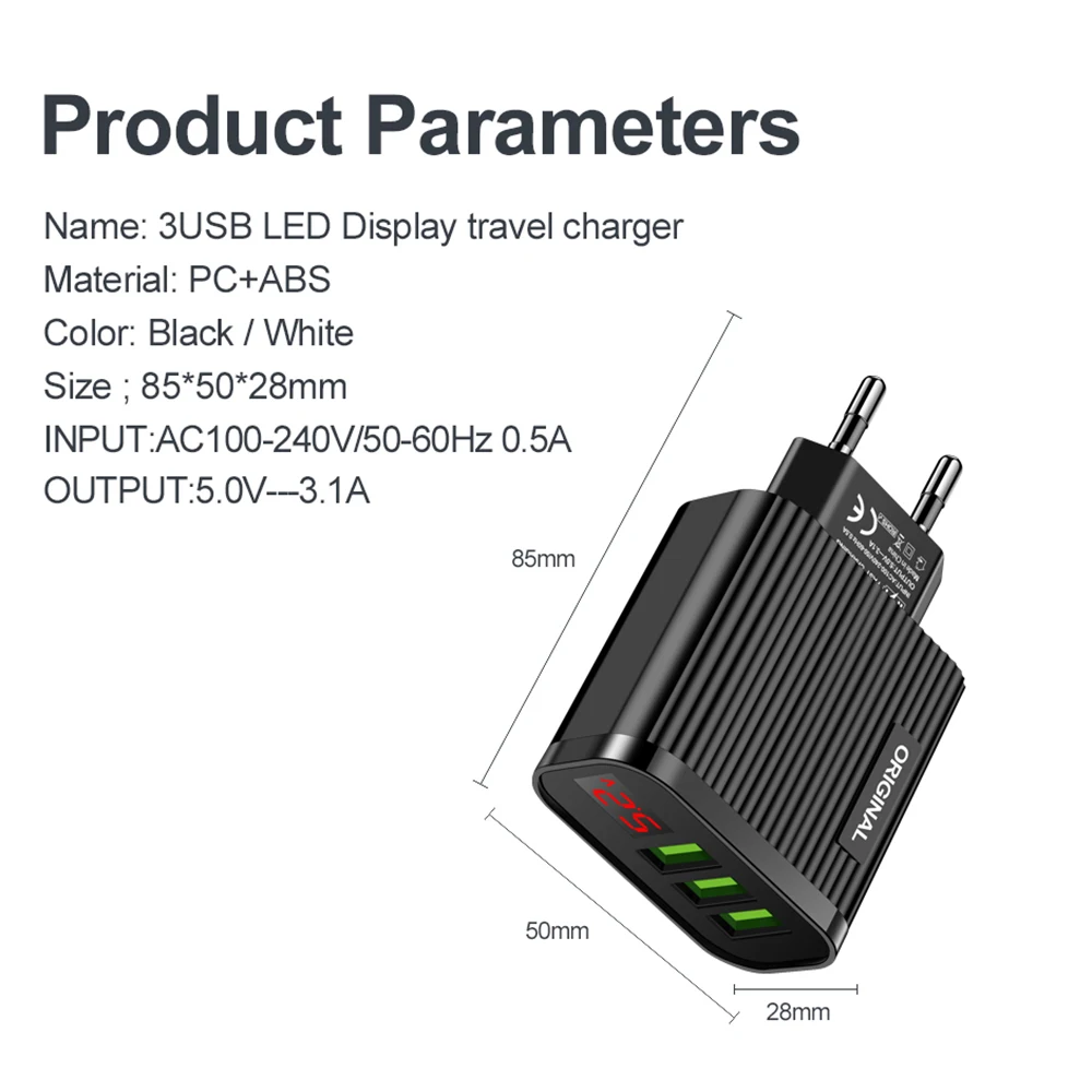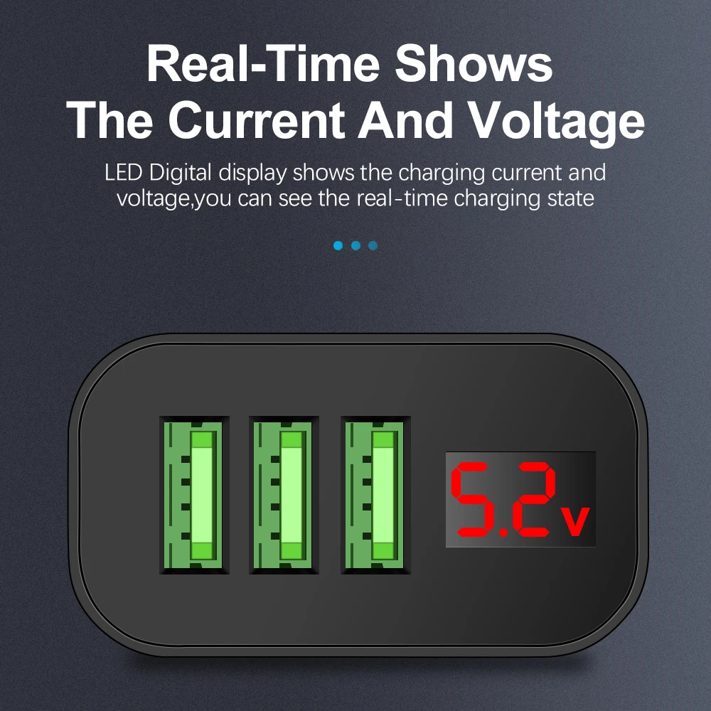 Зарядное устройство для телефона с цифровым дисплеем, 3 USB-порта, ...