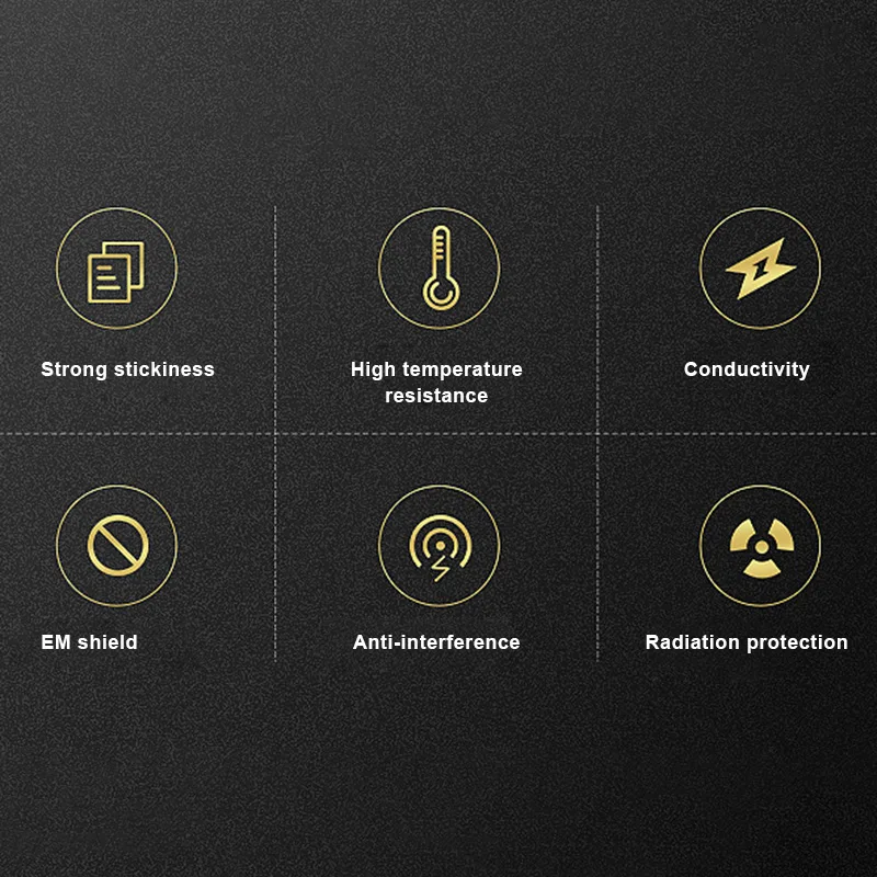 Обладает сильной адгезией, хорошей электрической проводимостью, защитой от помех, анти-старение.Примечание: