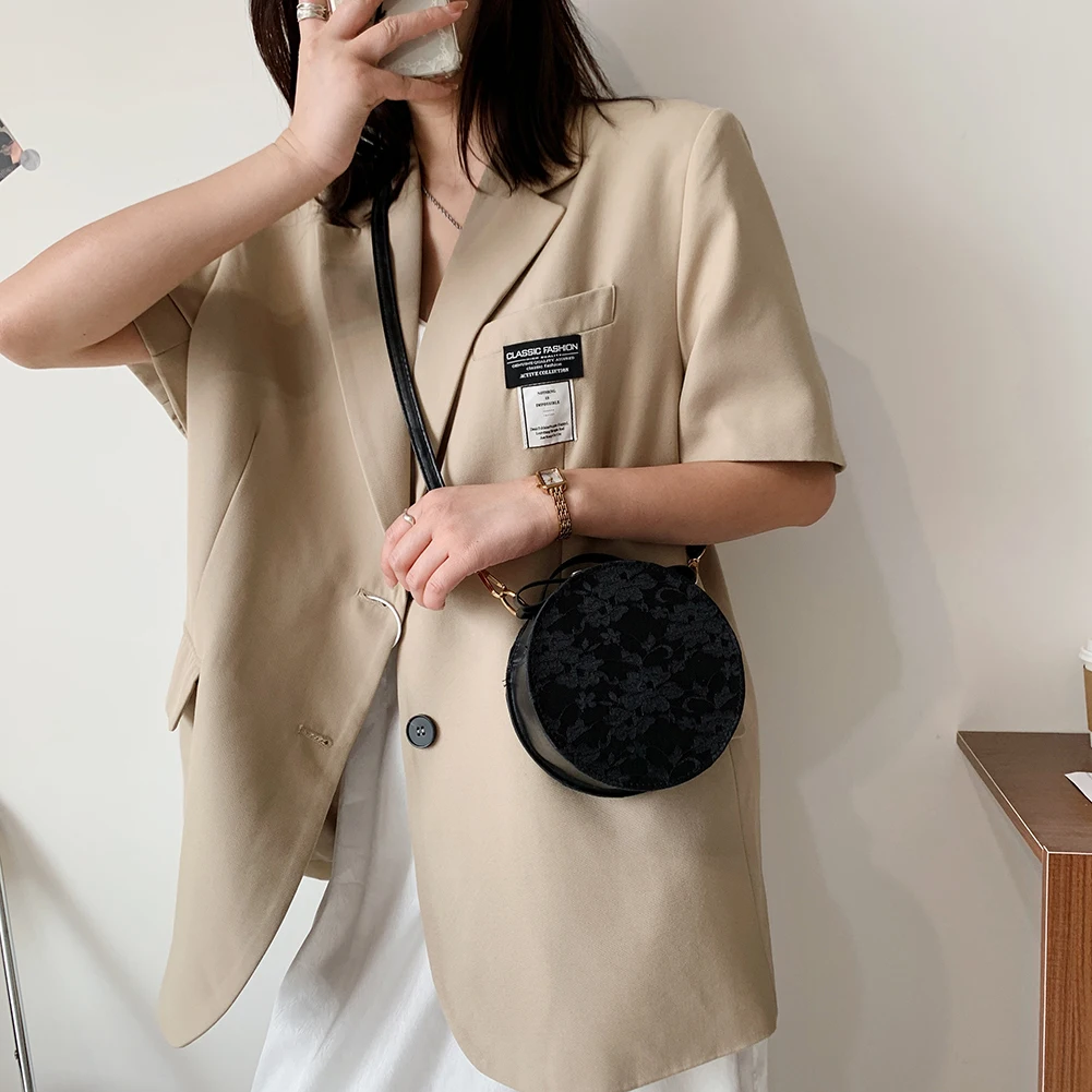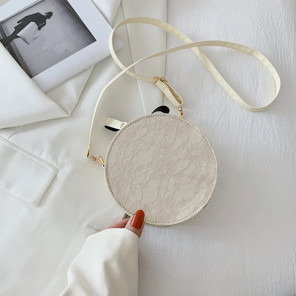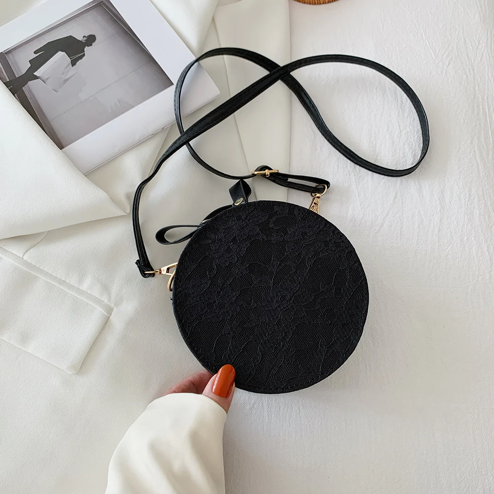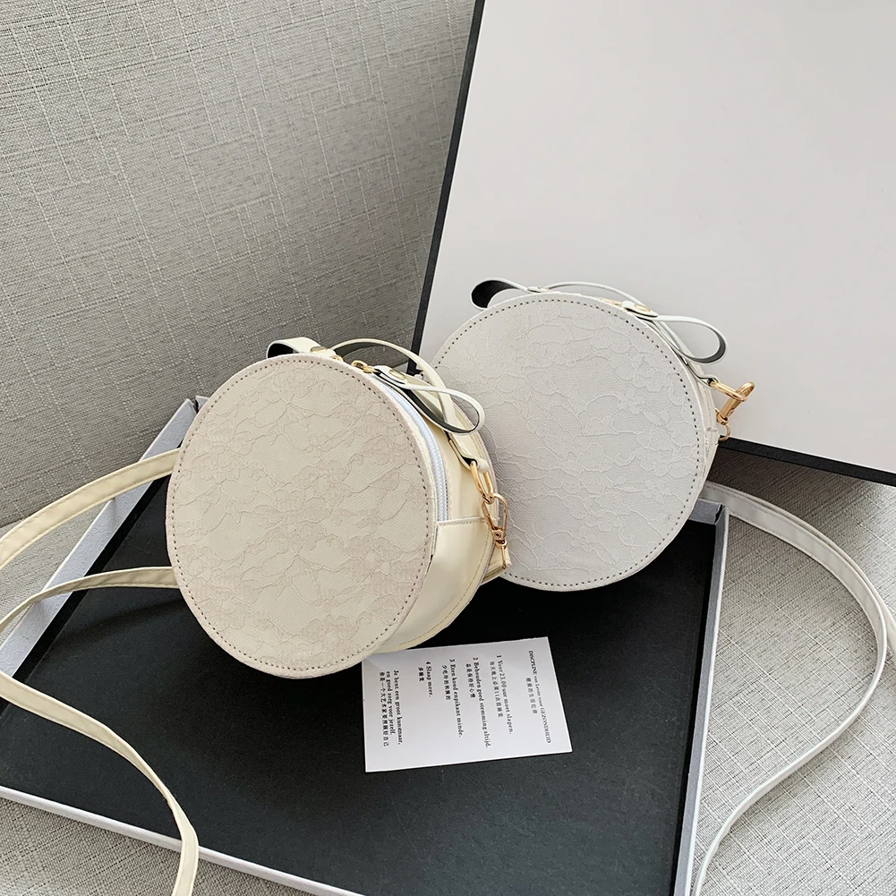 Модная женская сумка-мессенджер из искусственной кожи с кружевным цветком и круглым плечом, повседневная женская однотонная мини-сумочка, сумки